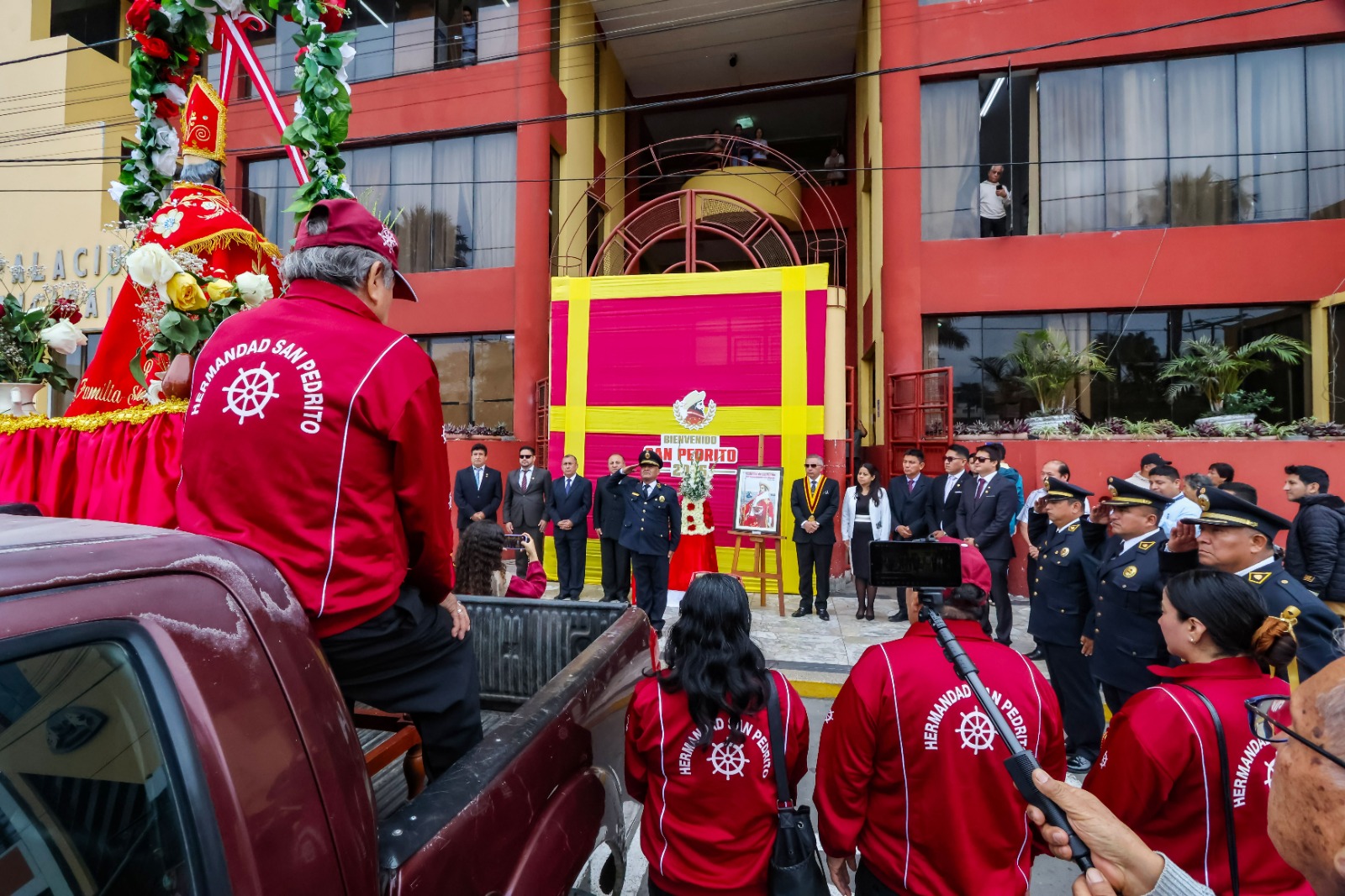 La Municipalidad Provincial del Santa (MPS), con el alcalde Felipe Mantilla Gonzáles a la cabeza, recibió esta mañana la sagrada imagen de nuestro santo patrón San Pedrito en su primera salida en el marco de la fiesta patronal.