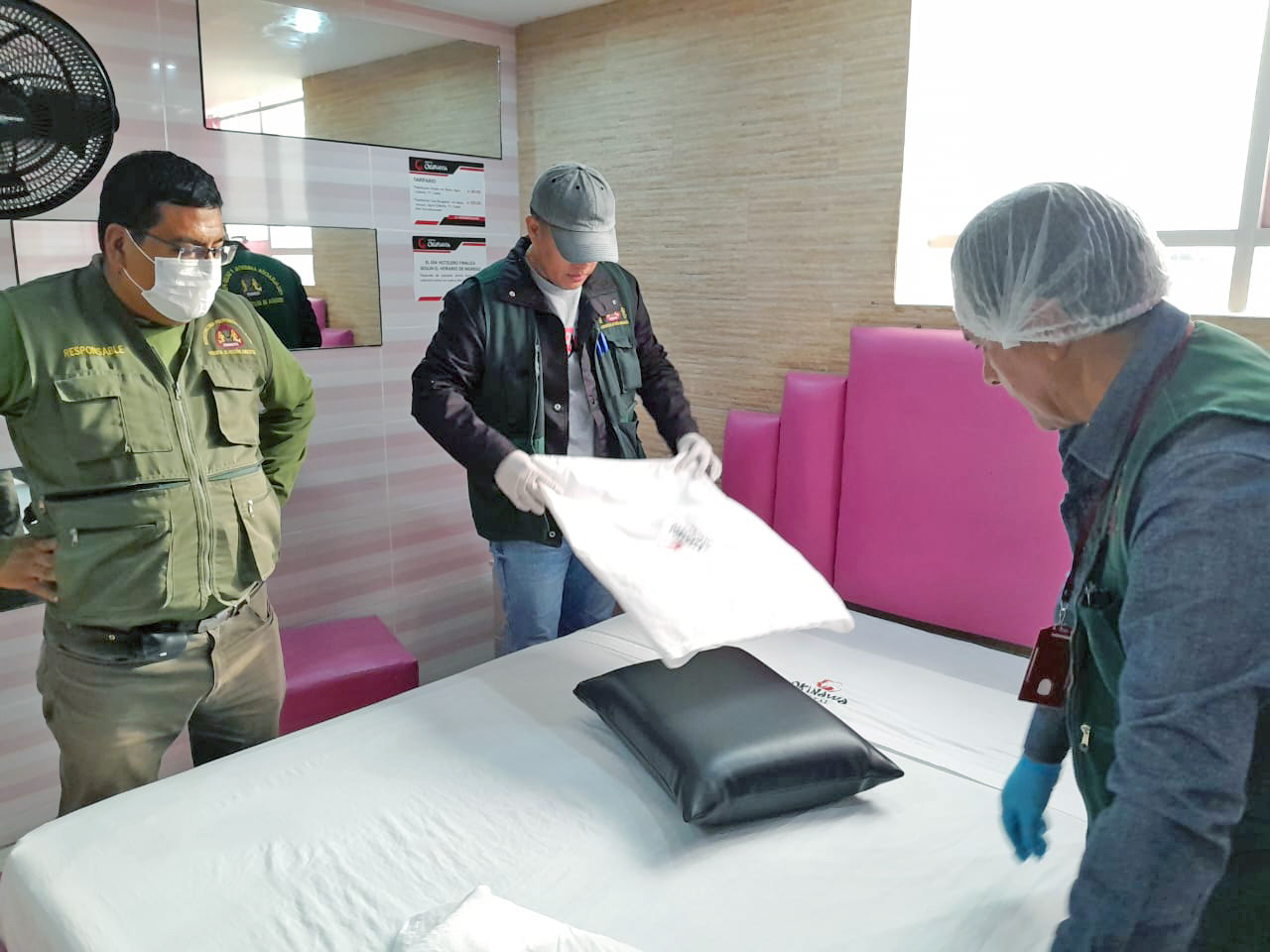 De la misma forma, se intervino el hostal Okinawa, situado en el jirón Micaela Bastidas, en el pueblo joven San Juan. Los inspectores hallaron colchones, fundas y sábanas sucias y con manchas. Durante la reinspección, el equipo municipal procedió a la incautación del material en mal estado y aplicó igualmente una multa similar al anterior hostal.